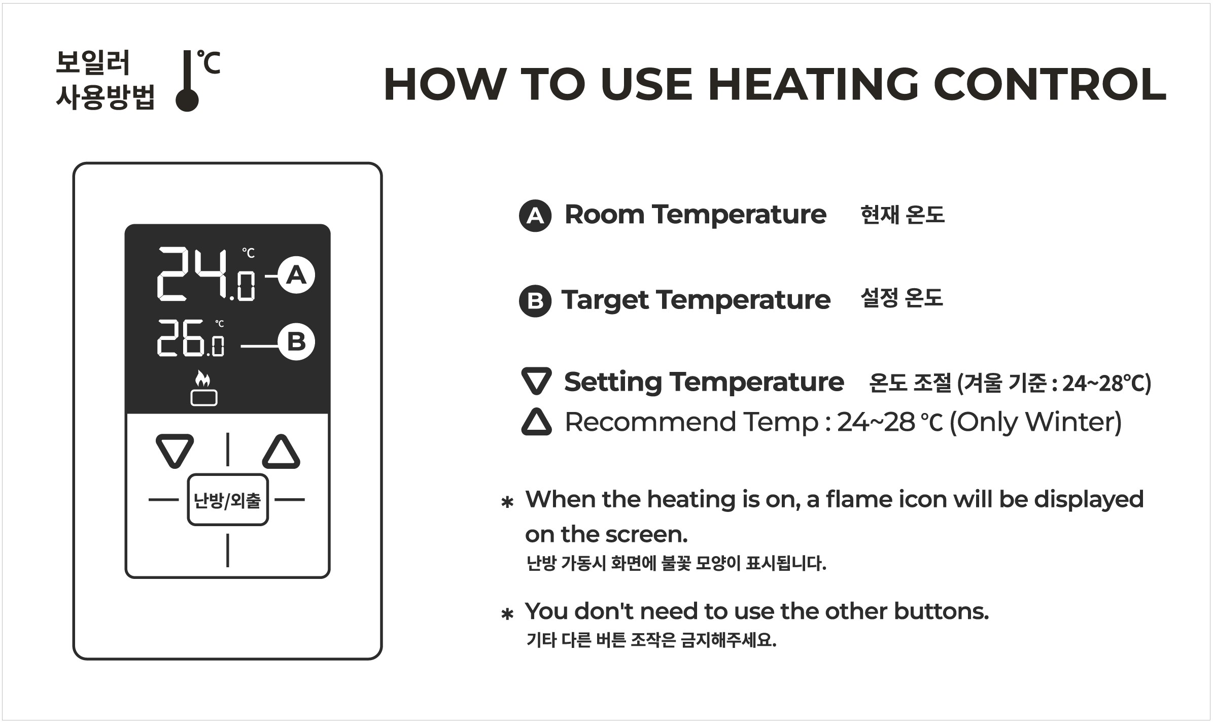 '온돌' 버튼을 누르고, 온도를 조절해 주세요. (겨울 적정온도는 55~60℃입니다.)