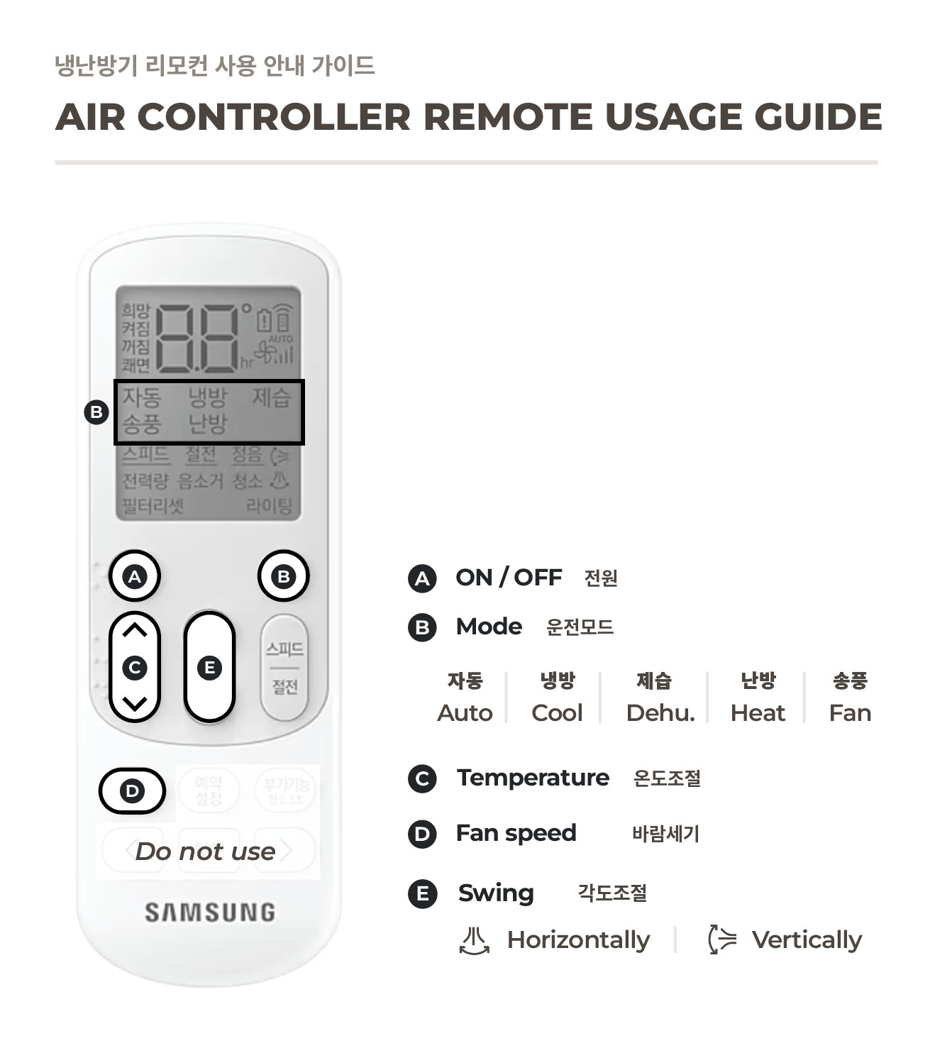 냉방만 가능하며 난방은 작동하지 않습니다.