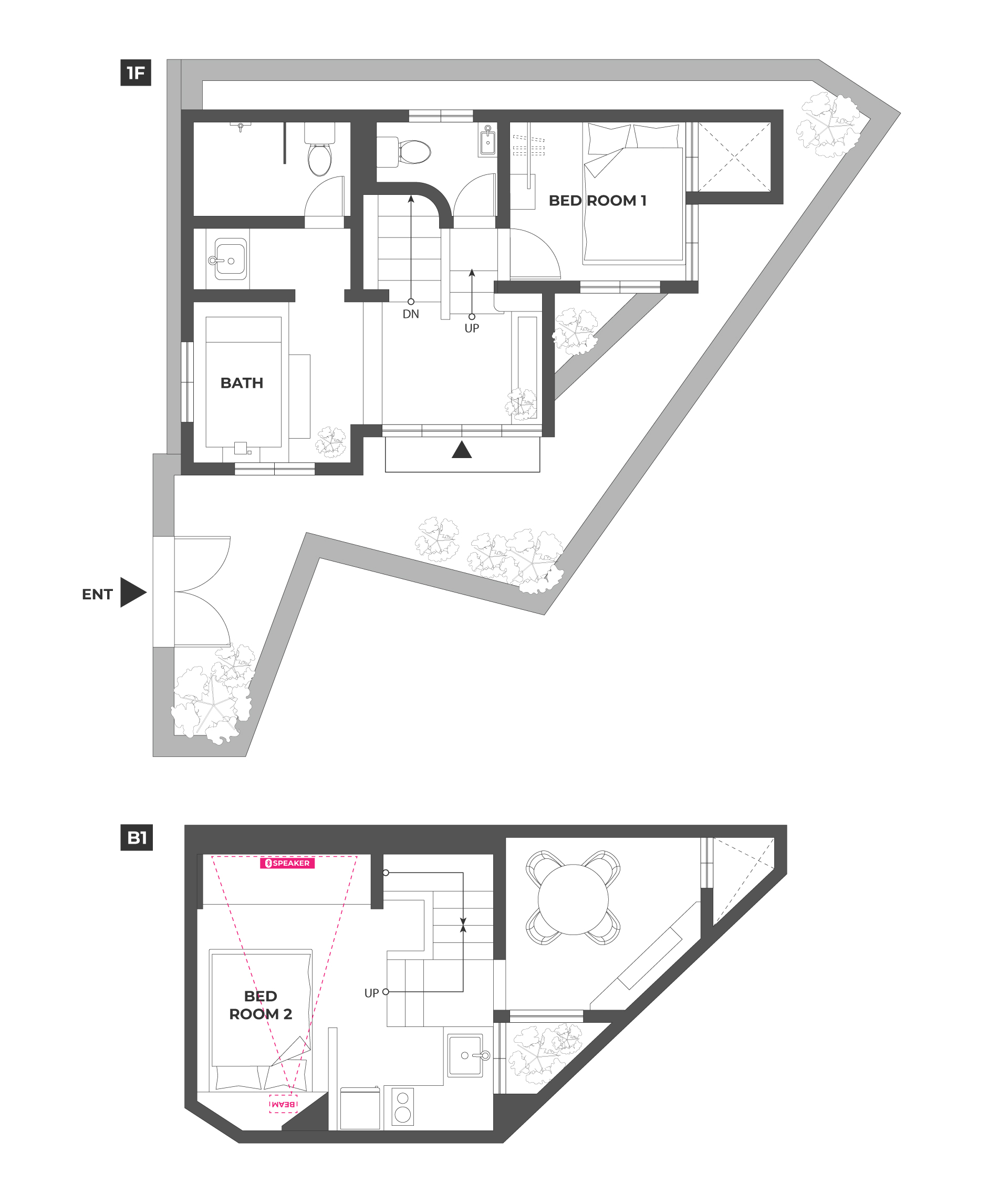 거실, 침실