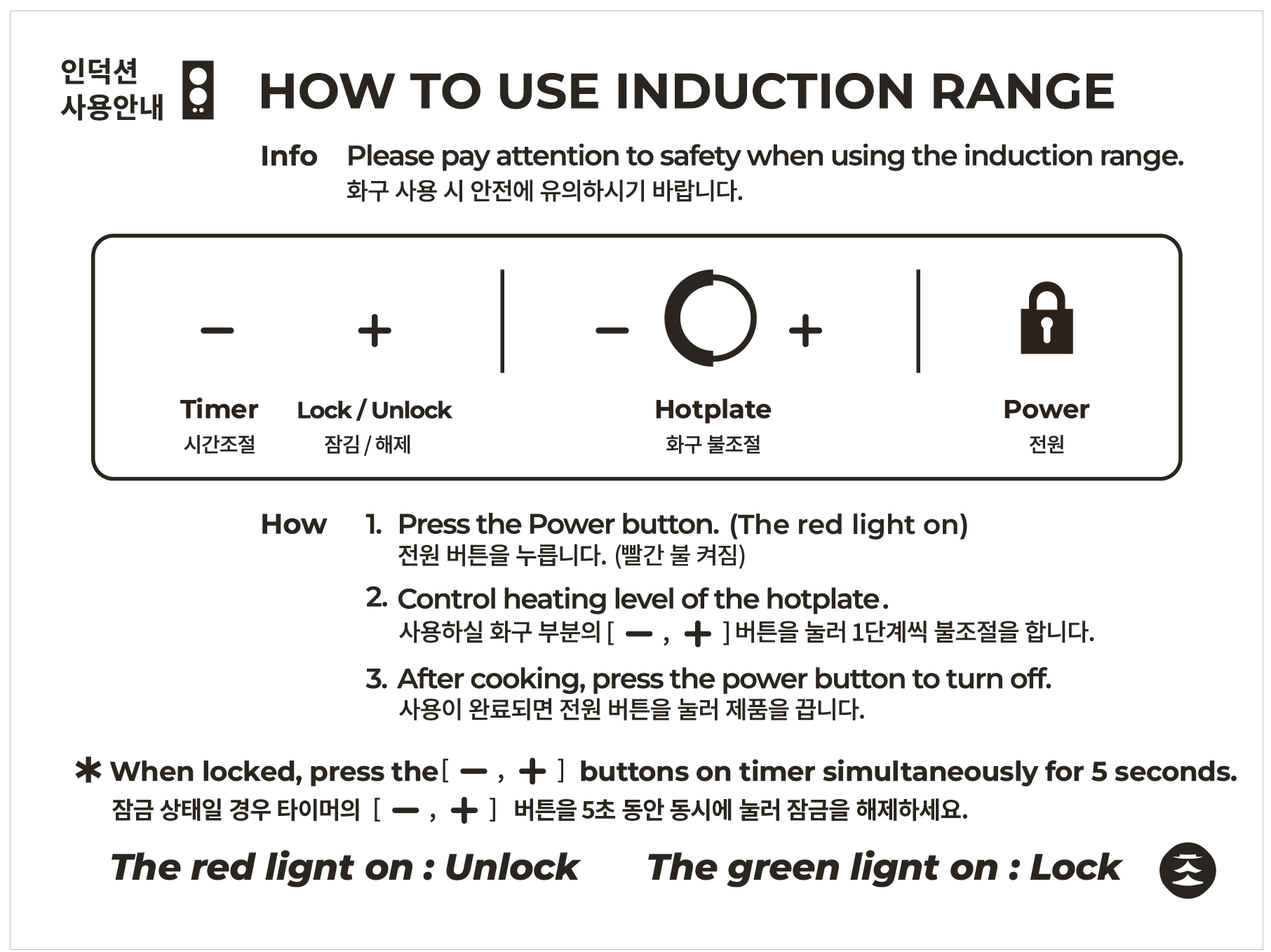 조리기구를 올려둔 후, 전원을 켜고 화력을 조정하세요.