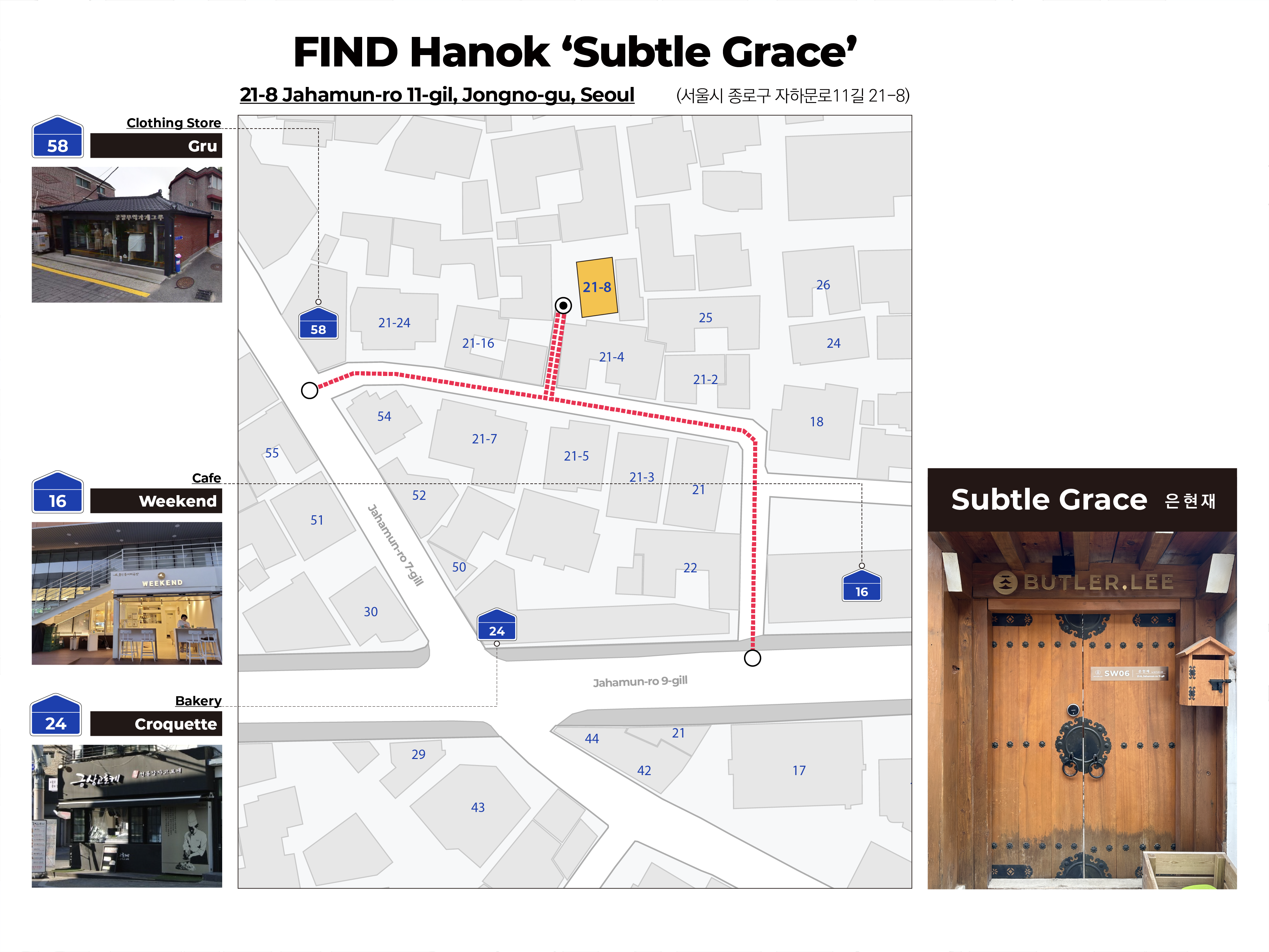 택시 혹은 차량을 이용하시는 경우, 통인동 커피공방 위켄드 (종로구 자하문로9길 16) 에서 하차하신 후 도보로 이동하세요.