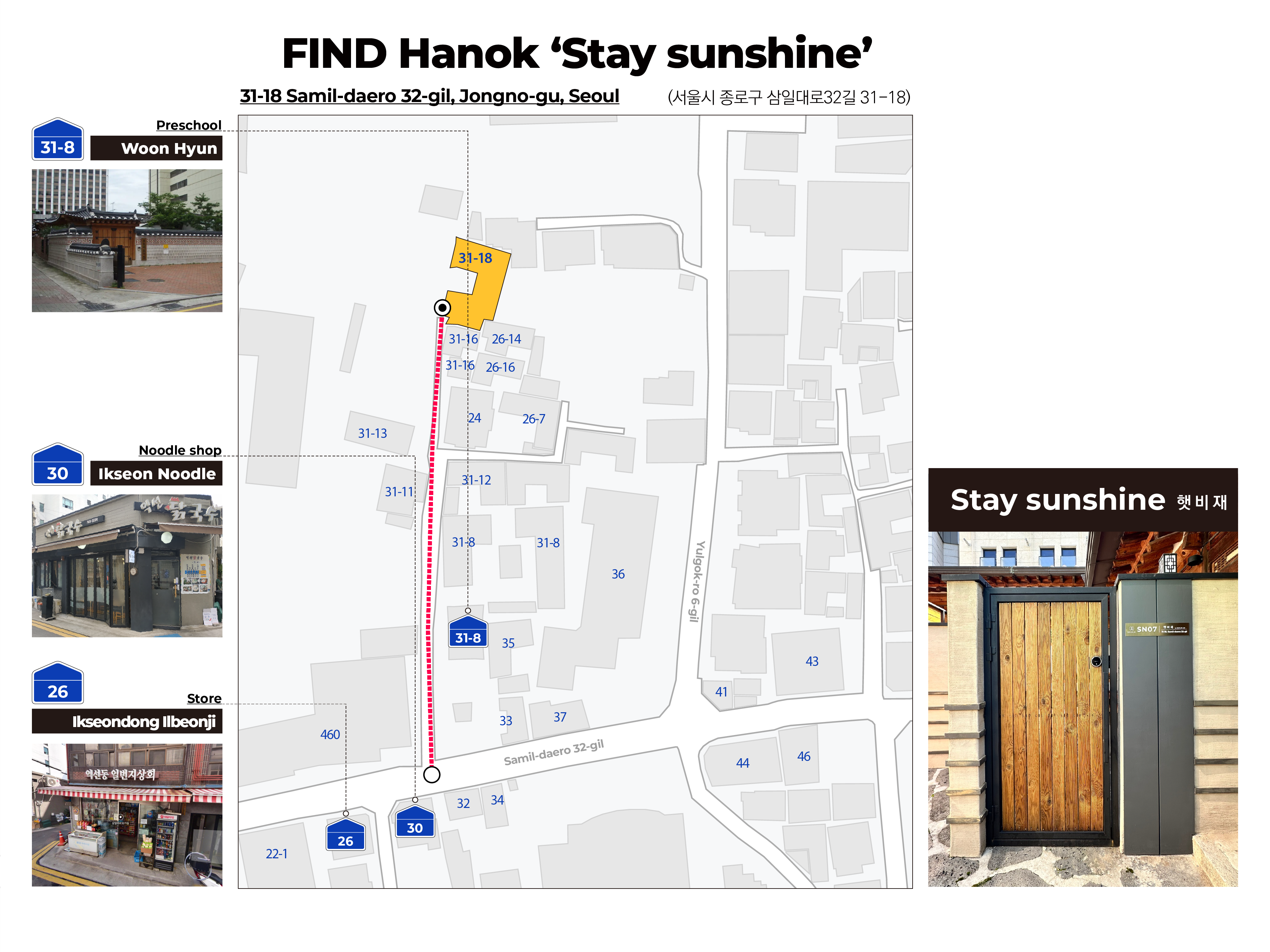 골목길이 좁아서 차량 진입이 불가합니다. 택시 혹은 차량을 이용하시는 경우, 운현어린이집 (삼일대로32길 31-8) 에서 하차하신 후 도보로 이동하세요.