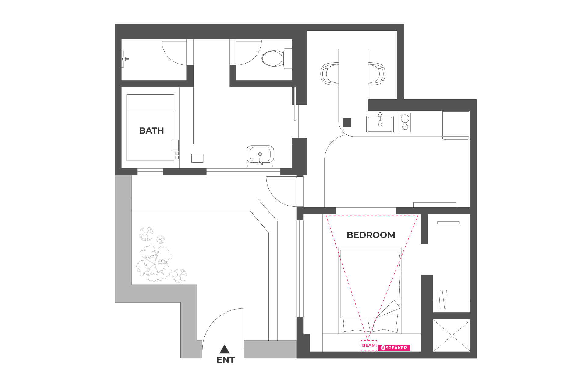 스피커 전원과 블루투스 버튼을 누른 후, 빔프로젝터에서 ‘Bose TV Speaker’를 선택해 연결하세요.