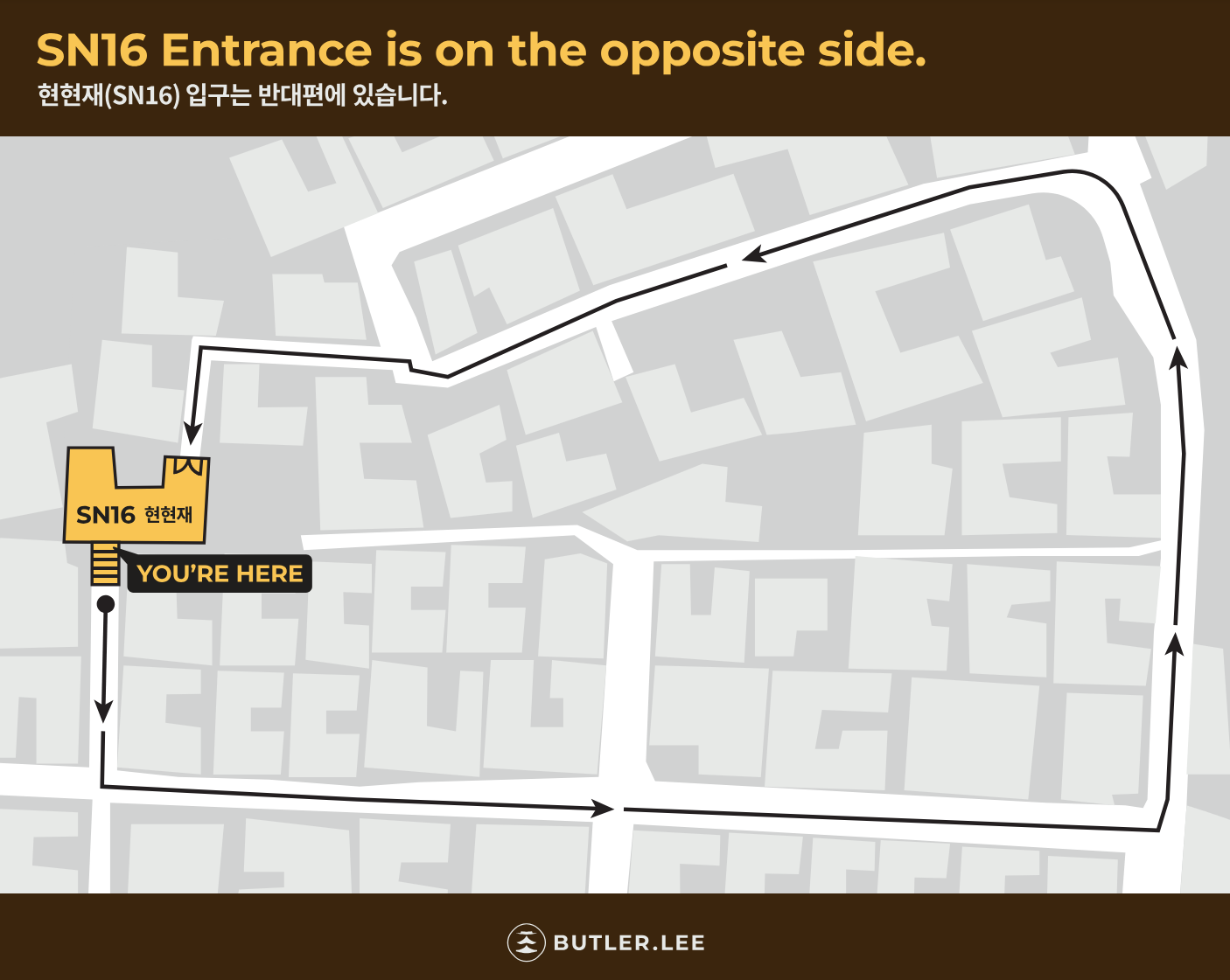 폐쇄된 출입구로 도착하신 경우, 아래 지도를 참고하여 올바른 입구로 이동해 주세요.
